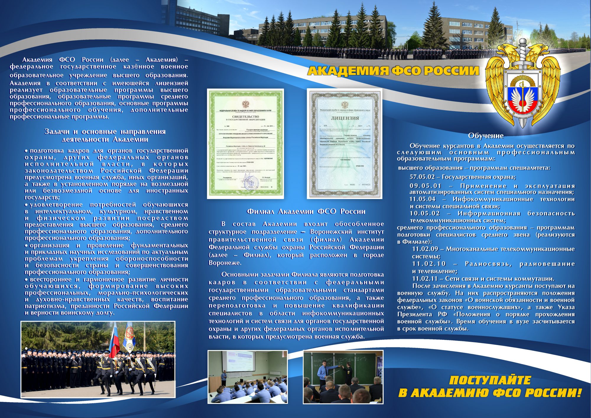 Ознакомиться с рекламными материалами об Академии Федеральной службы охраны вы можете по следующим ссылкам: